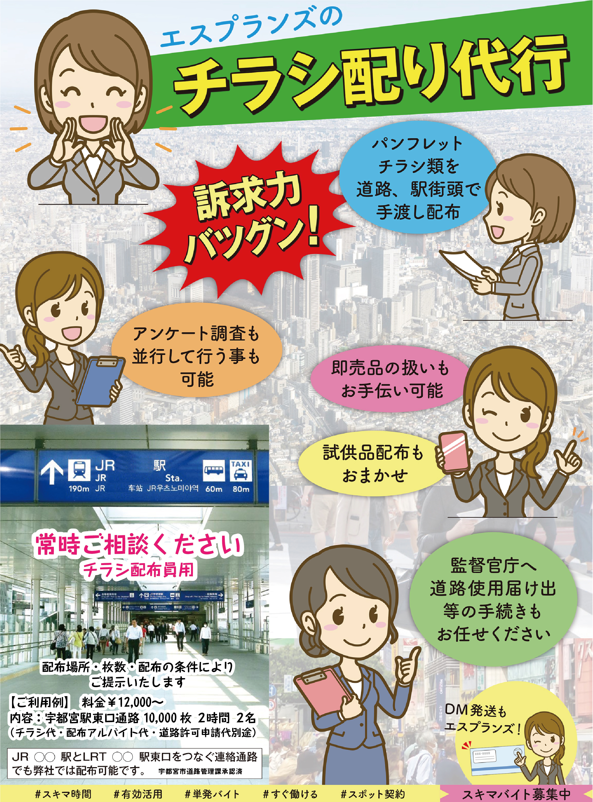 【ビラ・チラシ配り専用】↓メールでお見積依頼&お問合せ↓ ※メールをご利用の方は下の『メール用お問合わせフォーム』にて各項目をご入力後、そのまま送信いただけますようお願いいたします※当社は個人情報保護方針に則り、お預かりした情報をサービスの目的以外に使用いたしません。また、ご本人の同意なしに第三者へ情報を提供することは一切ありません。収集したデータは匿名化され、個人を特定できる形で公表されることはありません。 メールお問合せ用入力フォームへ